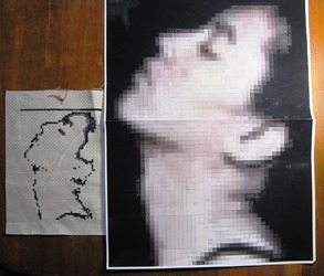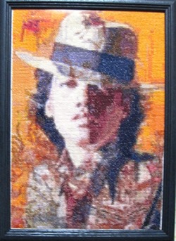 写真がすぐには出なかったので壁に飾ってあった「ピアフの刺繍」を撮ってやってくれた。