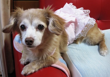 モモも元気です。相変わらずの無愛想で、抱こうとすると逃げますが、そういう犬です。
